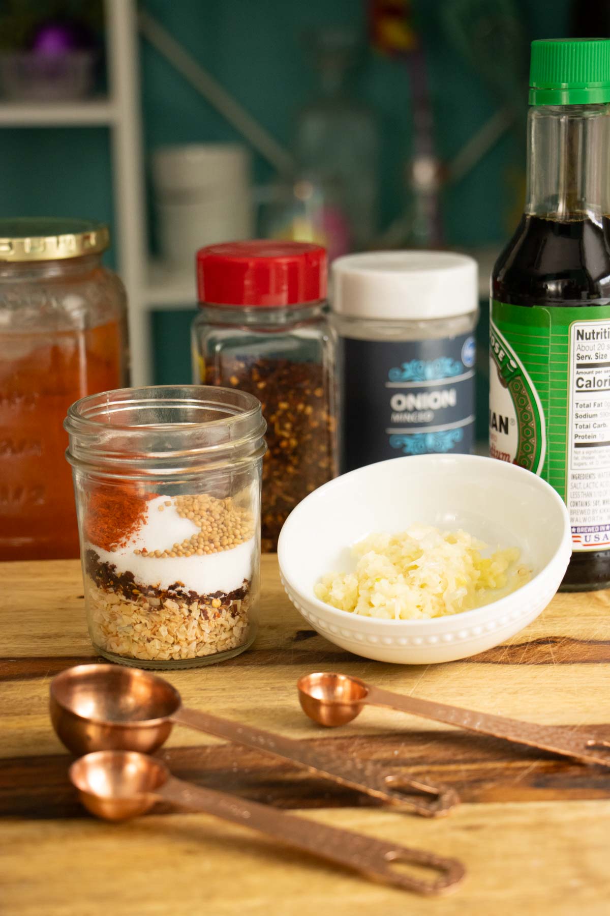 - Measure out all of your ingredients before you start heating up the oil. I like to measure out the dry spices, salt, and sugar into a small cup or jar and just keep the soy sauce and tablespoon measure handy by the stove. Once you start cooking, you want to be able to move quickly.
